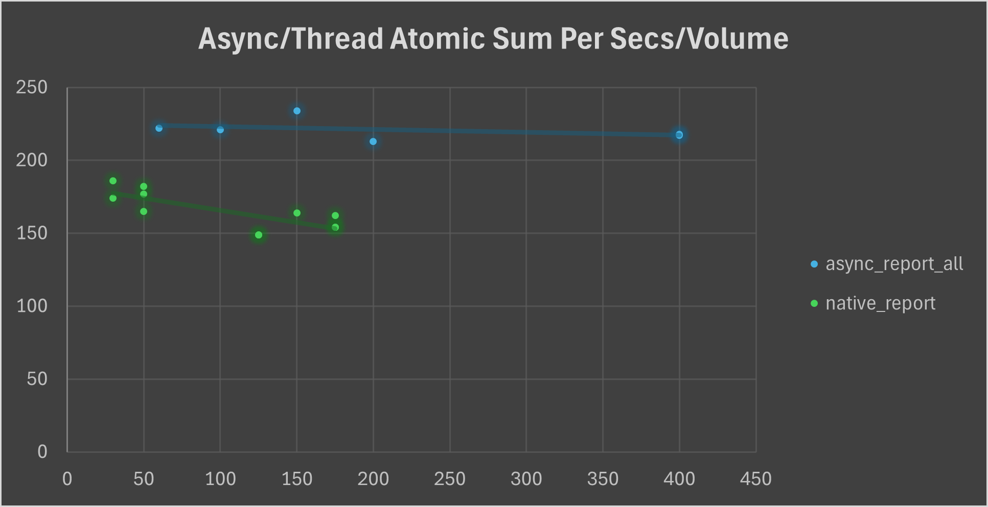 Results of above indicates that priority design isn’t a big cost to current executor, especially in volume growth. Also, the higher and stable throughput of async tasks compared to threads.